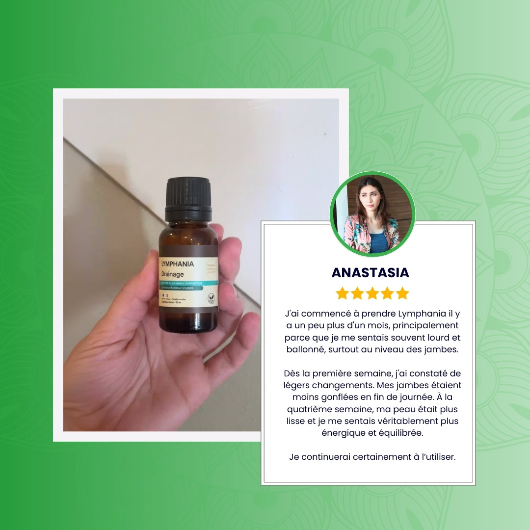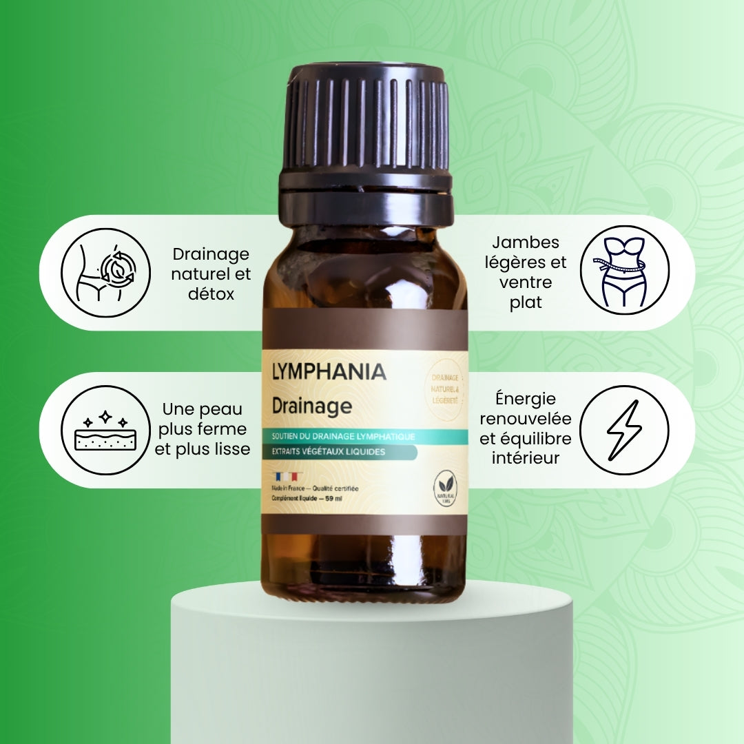 Quelques gouttes de Lymphania chaque matin dans un verre d’eau. Les actifs commencent à agir dès les premières heures.